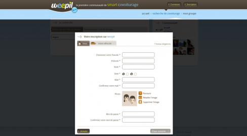 weepil est un site ambitieux de covoiturage qui propose la gestion du covoiturage régulier. L'utilisateur peut créer ou rejoindre un groupe de covoiturage effectuant un trajet régulier (généralement domicile-travail).
