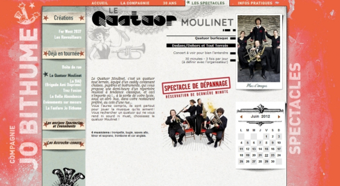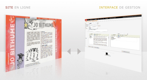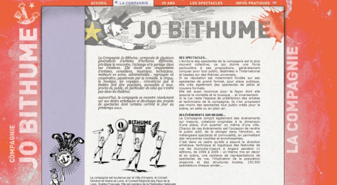 Le site web multilingue de Jo Bithume présente les spectacles passés, présents et futurs.